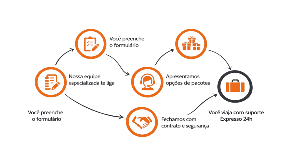 Durante toda a viagem, você conta com suporte Expresso 24 horas, antes, durante e após o evento. Nossa equipe fica disponível para auxiliar em qualquer necessidade: ajustes de logística, dúvidas, imprevistos ou orientações rápidas, garantindo tranquilidade total na sua experiência.